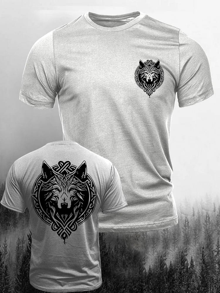 Simpfit L?ssiges Kurzarm-T-Shirt mit Wikingerwolf-Print f��r Herren
