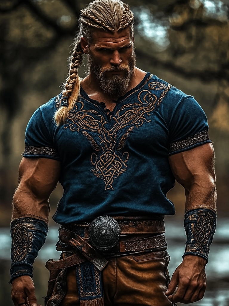 Simpfit Vintage Wikinger Raben Runen Print Kurz?rmeliges T-Shirt