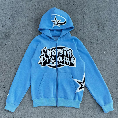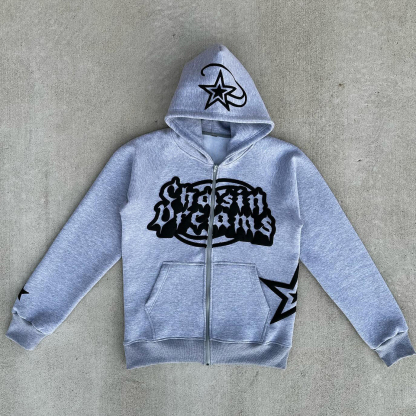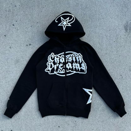 Chasin Dreams Print Long Sleeve Zipper Hoodies