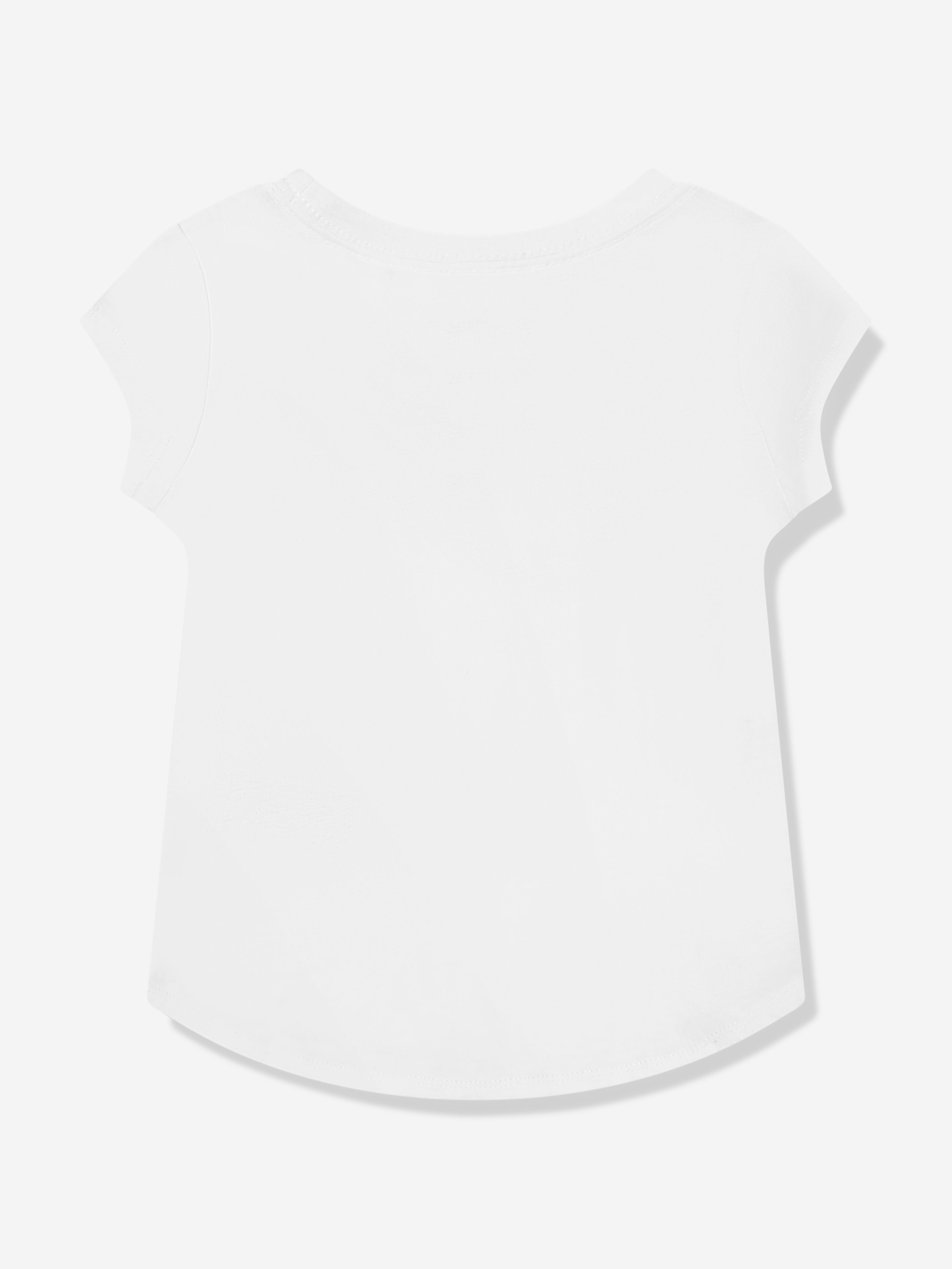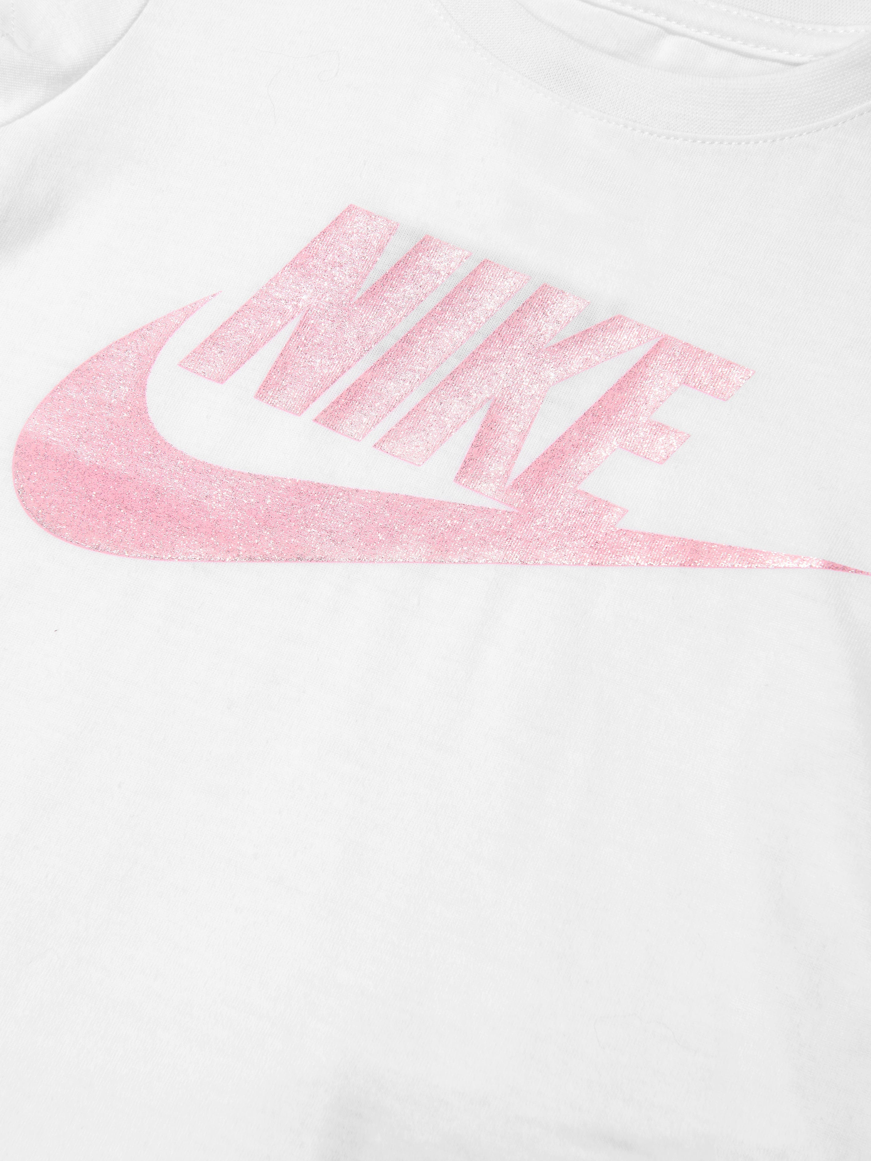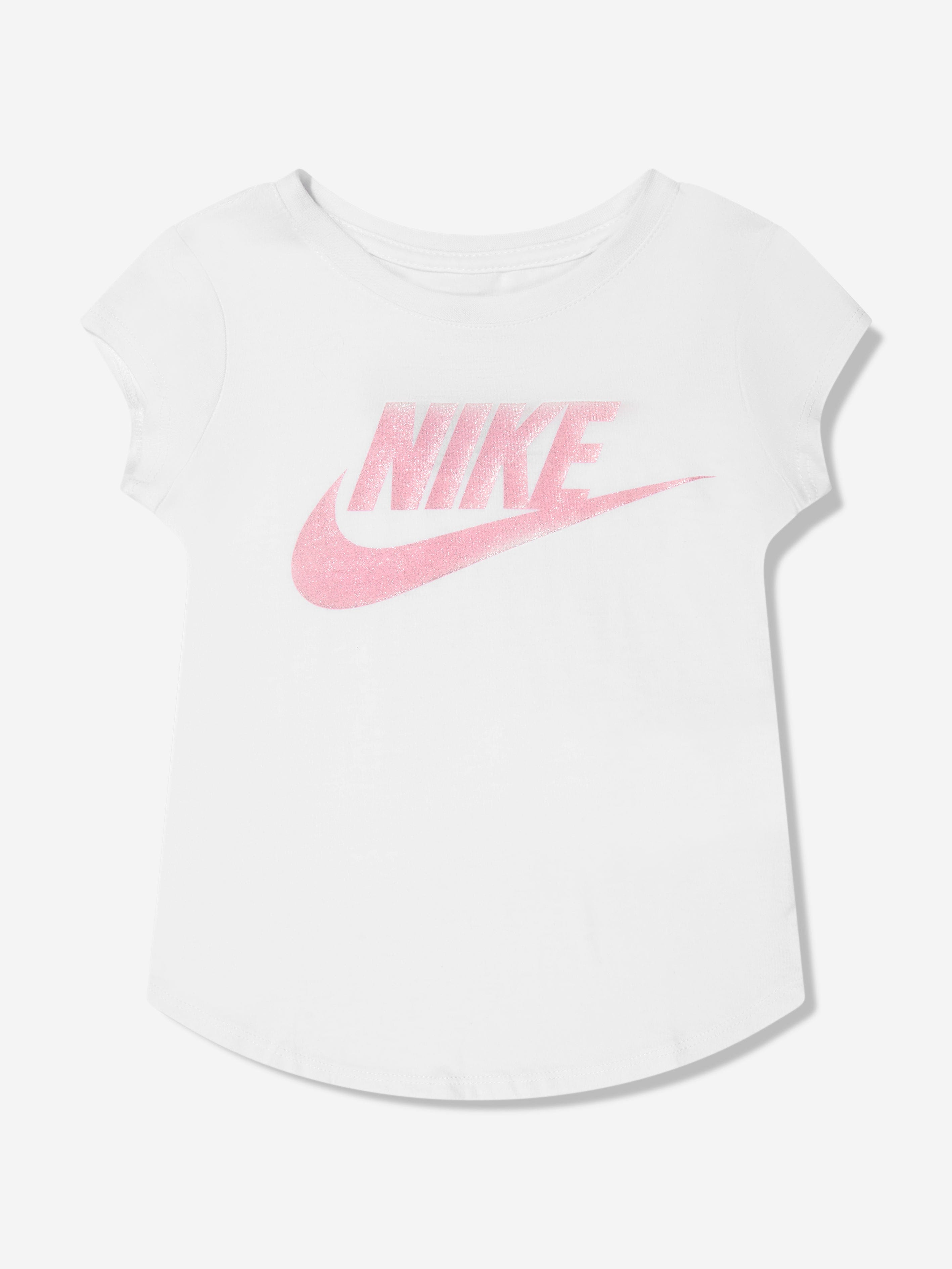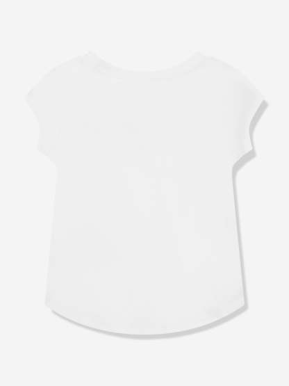 Introducing the chic Nittgke Girls Futura Logo T-Shirt in pristine white, an essential addition to your young lady's wardrobe, transcending seasons with grace and style. Prominent features include: