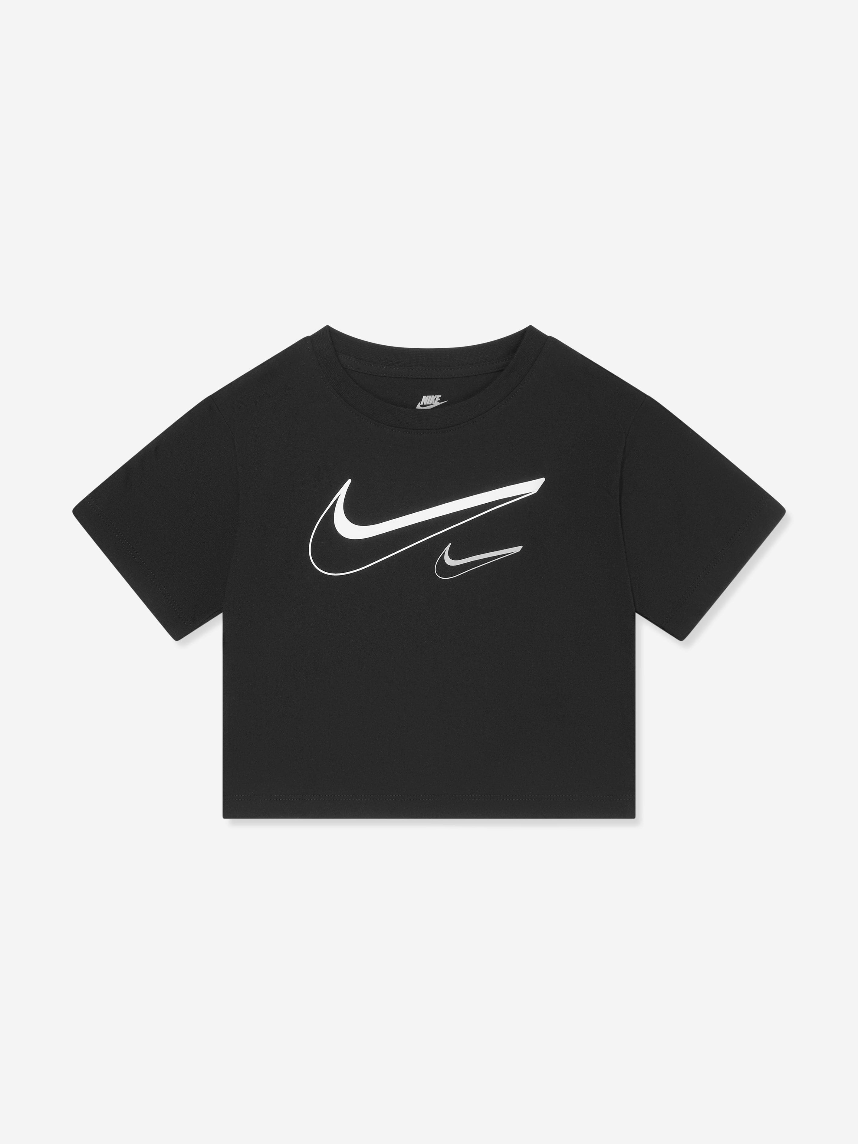 Nittgke Girls Swoosh Logo Boxy T-Shirt in Black
