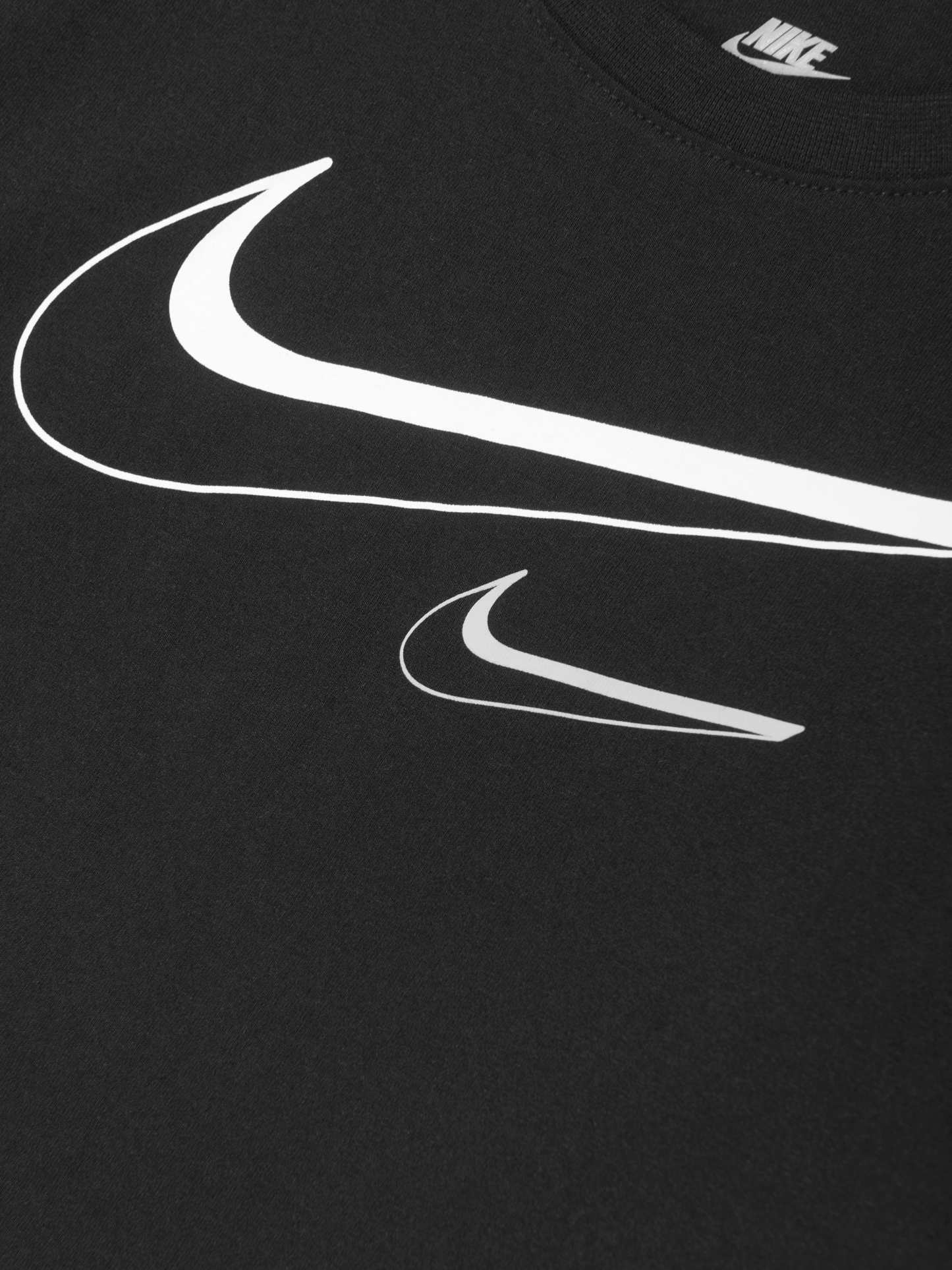 Nittgke incorporate high quality materials into their sports endurance designs. This girls Swoosh logo boxy t-shirt in black captures the label's passion for sleek, innovative designs. Crafted in the finest cotton with two Swoosh symbols taking centre stage. ? Short Sleeves ? Crew Neck ? Straight Hem? 60% Cotton, 40% Polyester