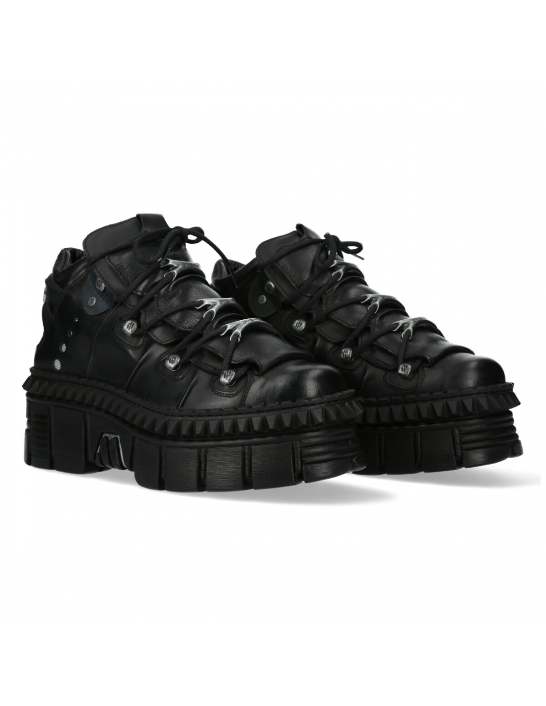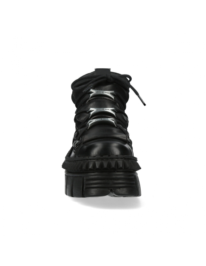 The M-WALL106-S13 boots are a model of low-cut ankle boots from the WALL collection made of premium quality genuine leather. These boots are sober and elegant thanks to the combination of matte black leather and metallic accessories, such as the bones of the laces.