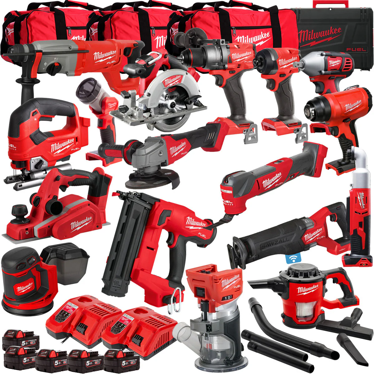 Milwaukee 18V 17 Piece Power Tool Kit with 5 x 5.0Ah Batteries T4TM-40