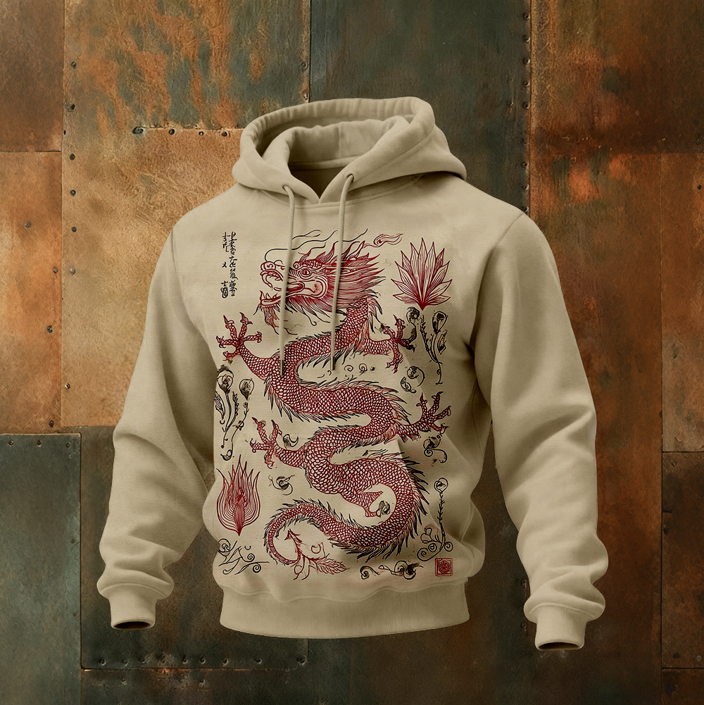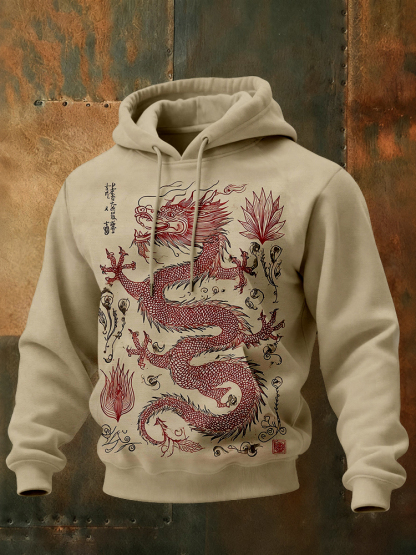 Simpfit Bequemer Herren-Hoodie mit asiatischem Drachenmotiv im Vintage-Stil