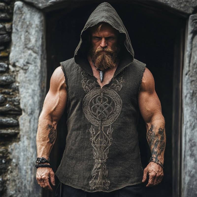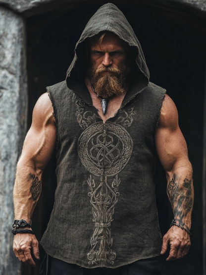 Simpfit BeDrucken Nachahmung aus Baumwolle und Leinen-Tanktop mit Kapuze im Wikinger-Stil f��r Herren