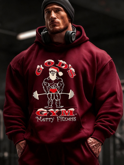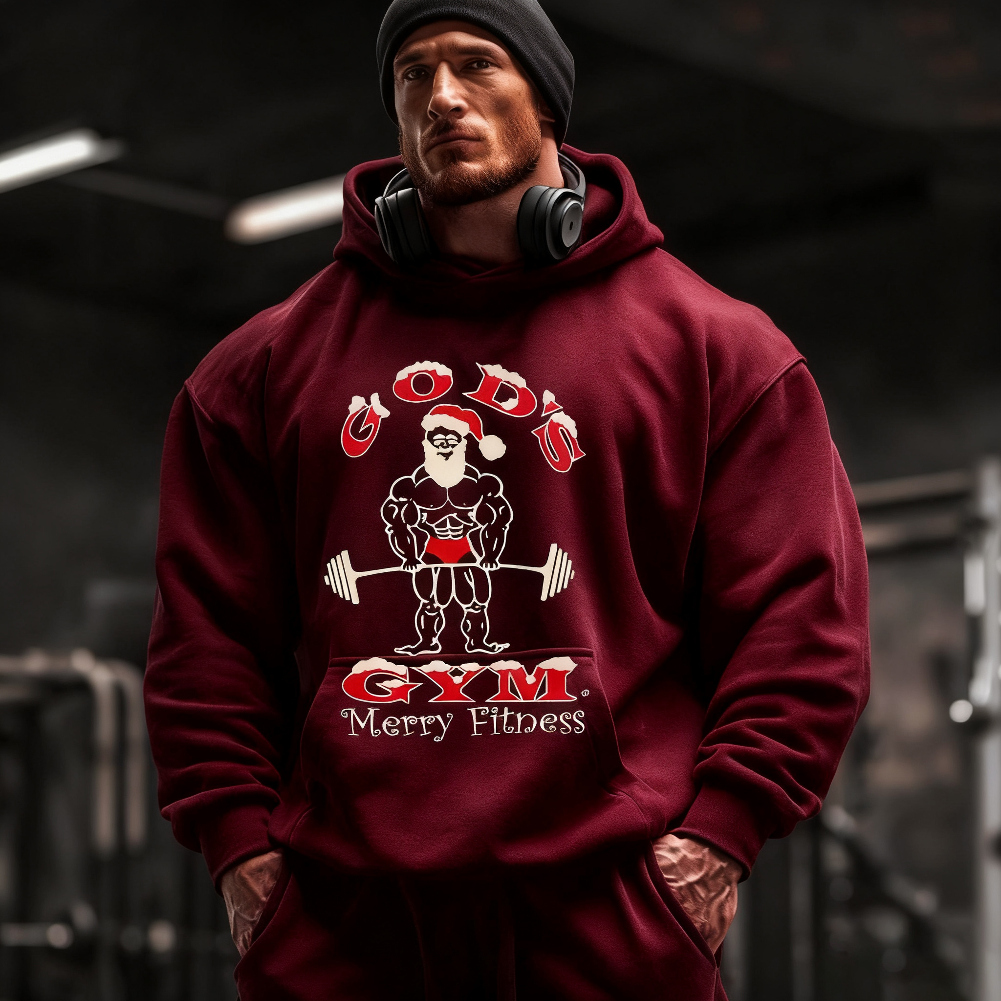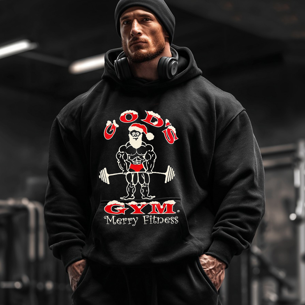 Simpfit God's Gym Merry Fitness Baumwoll-Kapuzenpullover mit Tasche