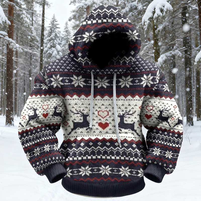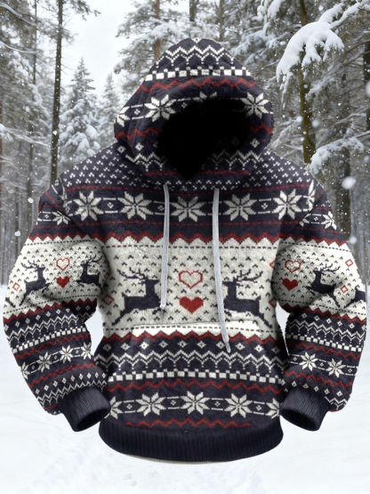 Simpfit Herren-Hoodie im Vintage-Stil mit fr?hlichem Weihnachtsmotiv und Hirschmotiv