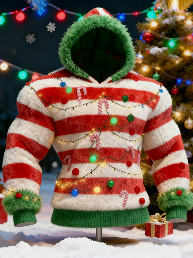 Simpfit Herren-Kapuzenpullover mit Weihnachtslichter-Streifen und Farbblock-Design