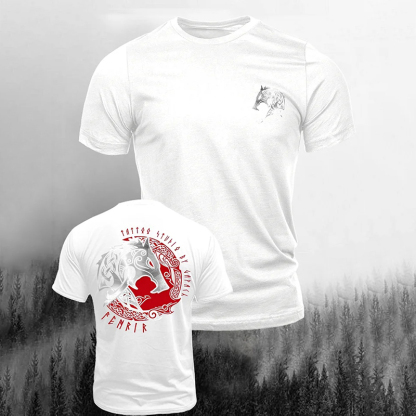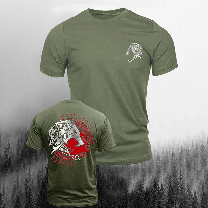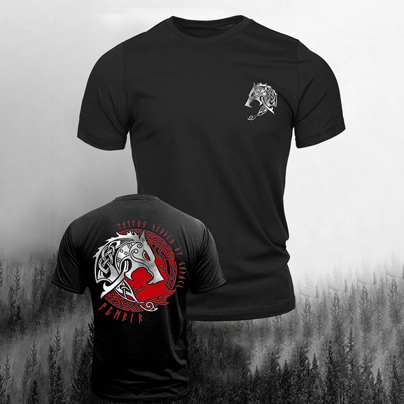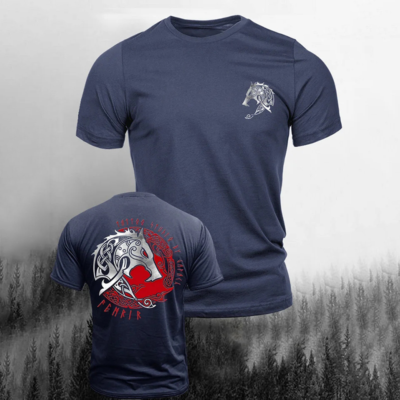 Simpfit L?ssiges Kurzarm-T-Shirt mit Vintage-Wikingerprint f��r Herren