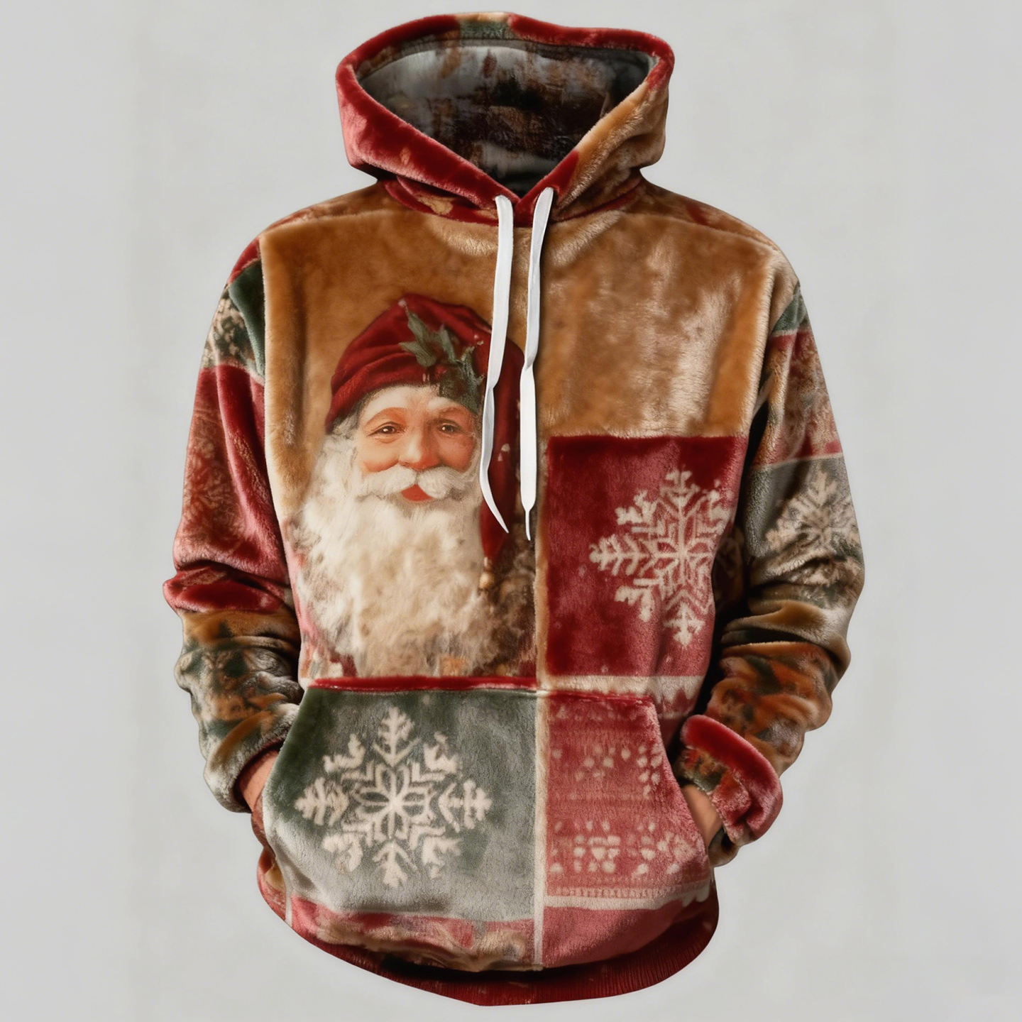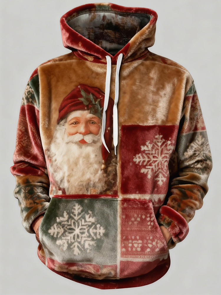 Simpfit Retro-Herren-Flanell-Hoodie mit Weihnachtsmann-Motiv und Farbblock-Design