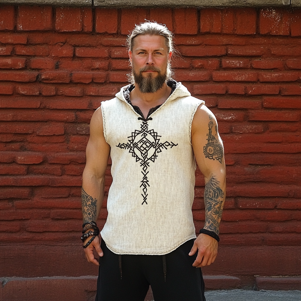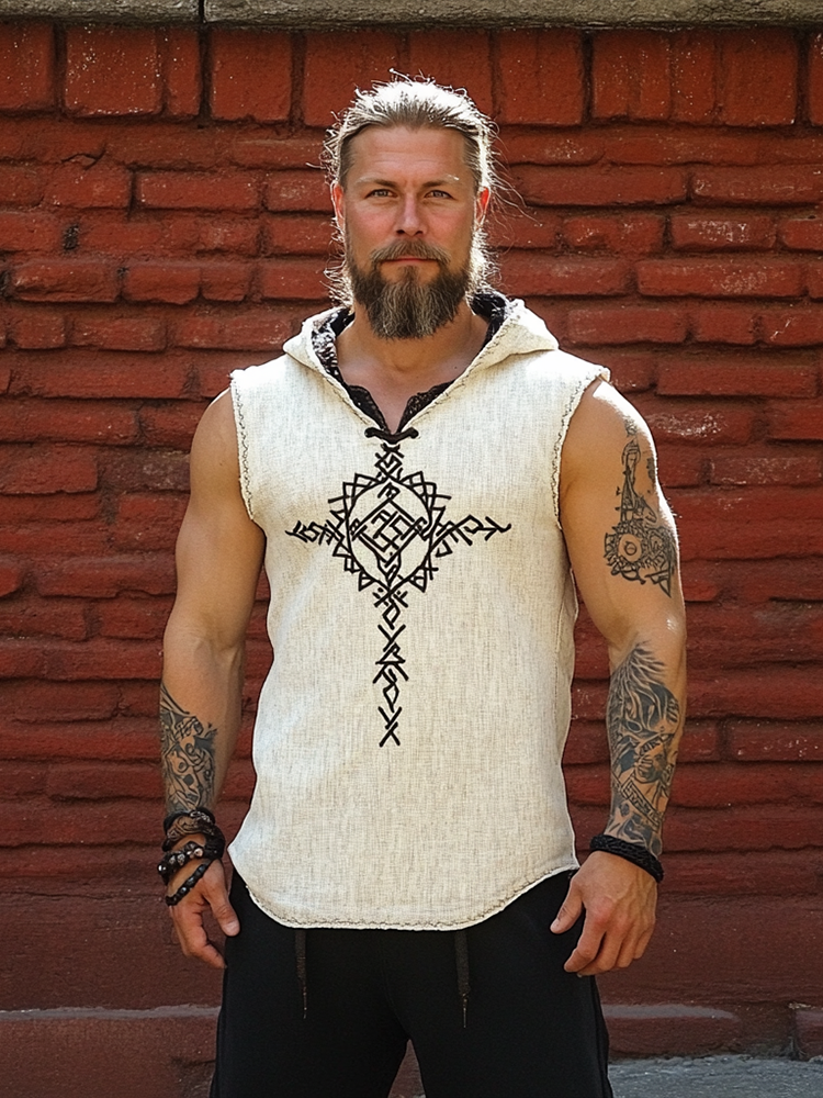 Simpfit Vintage Herren Wikinger Runen Nachahmung aus Baumwolle und Leinen Hoodie