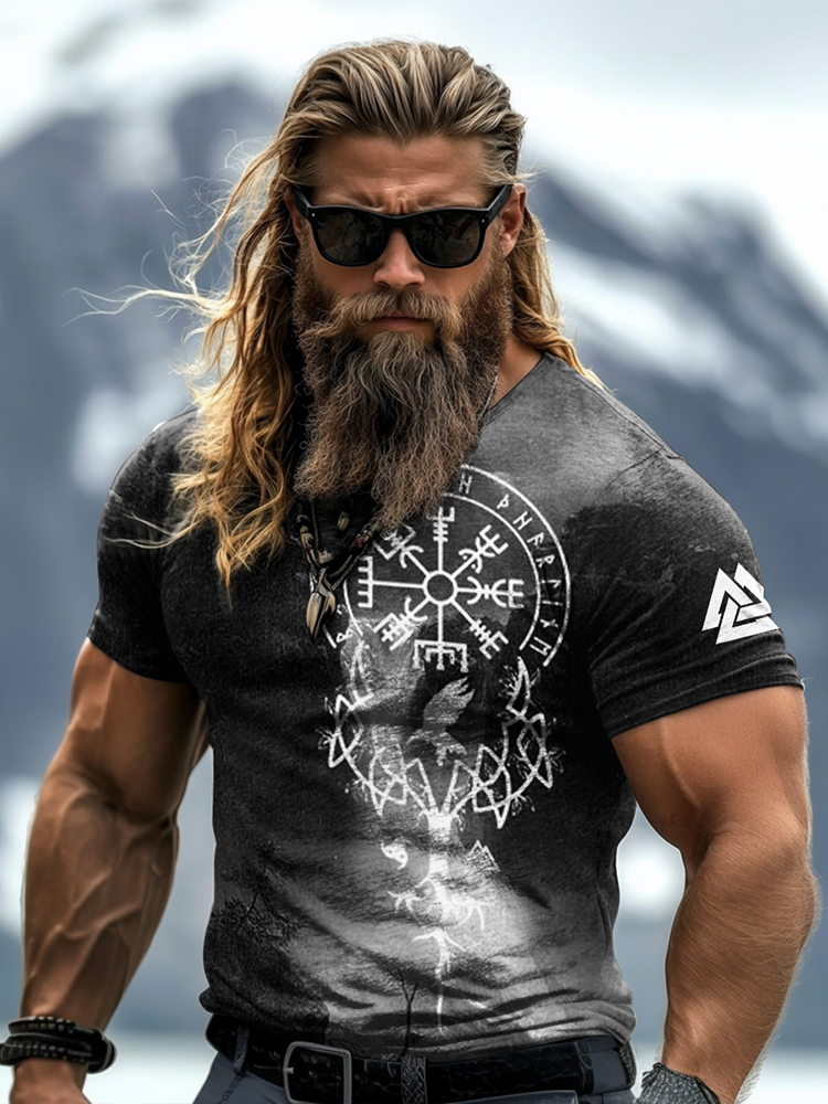 Simpfit Vintage Wikinger Totem Landschaft Design T-shirt