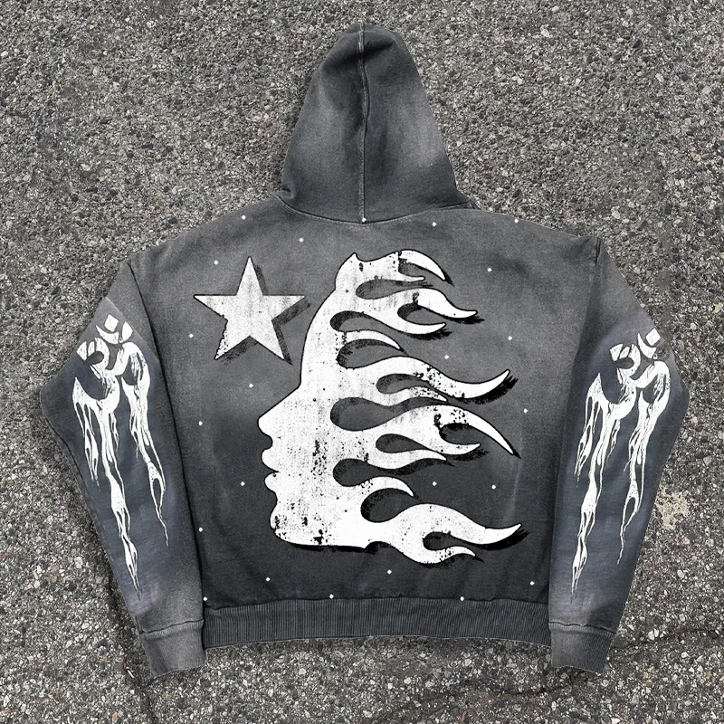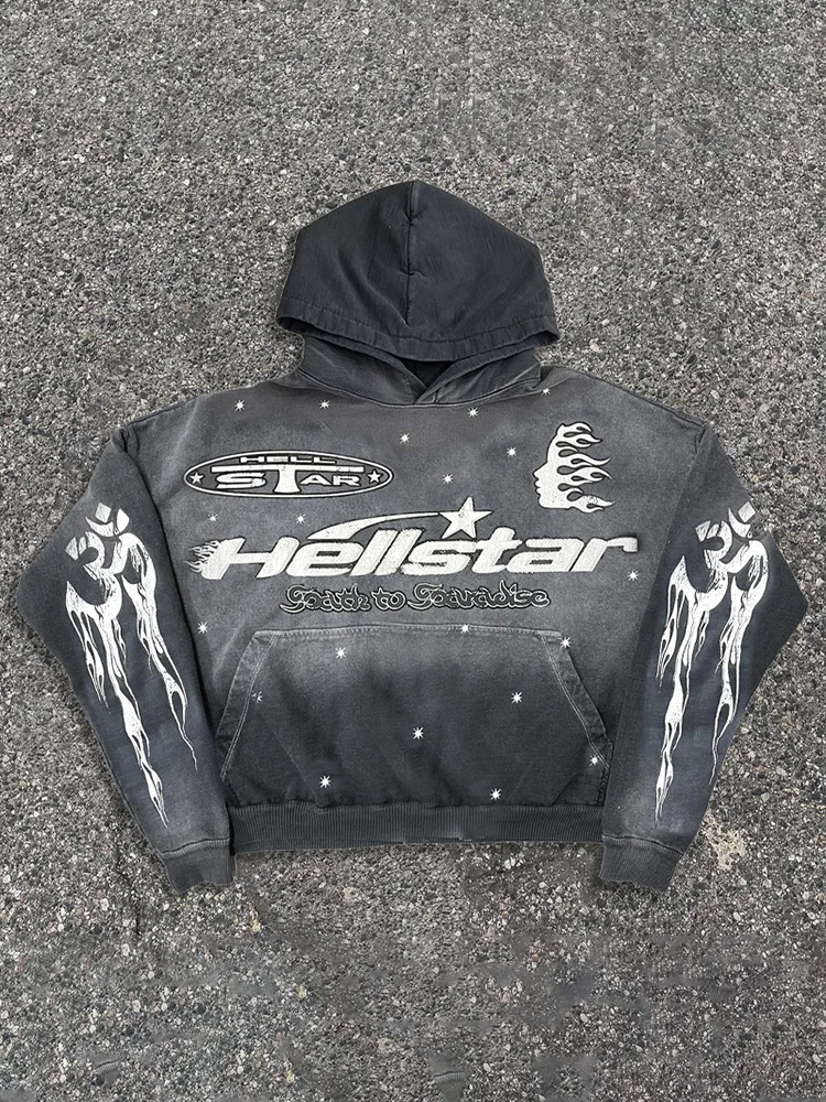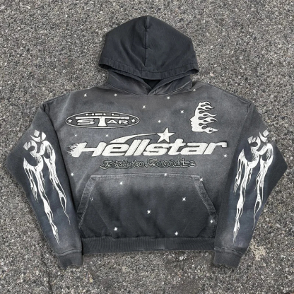 Vintage Hellstar Graphic Gray Acid Washed Pullover Hoodie