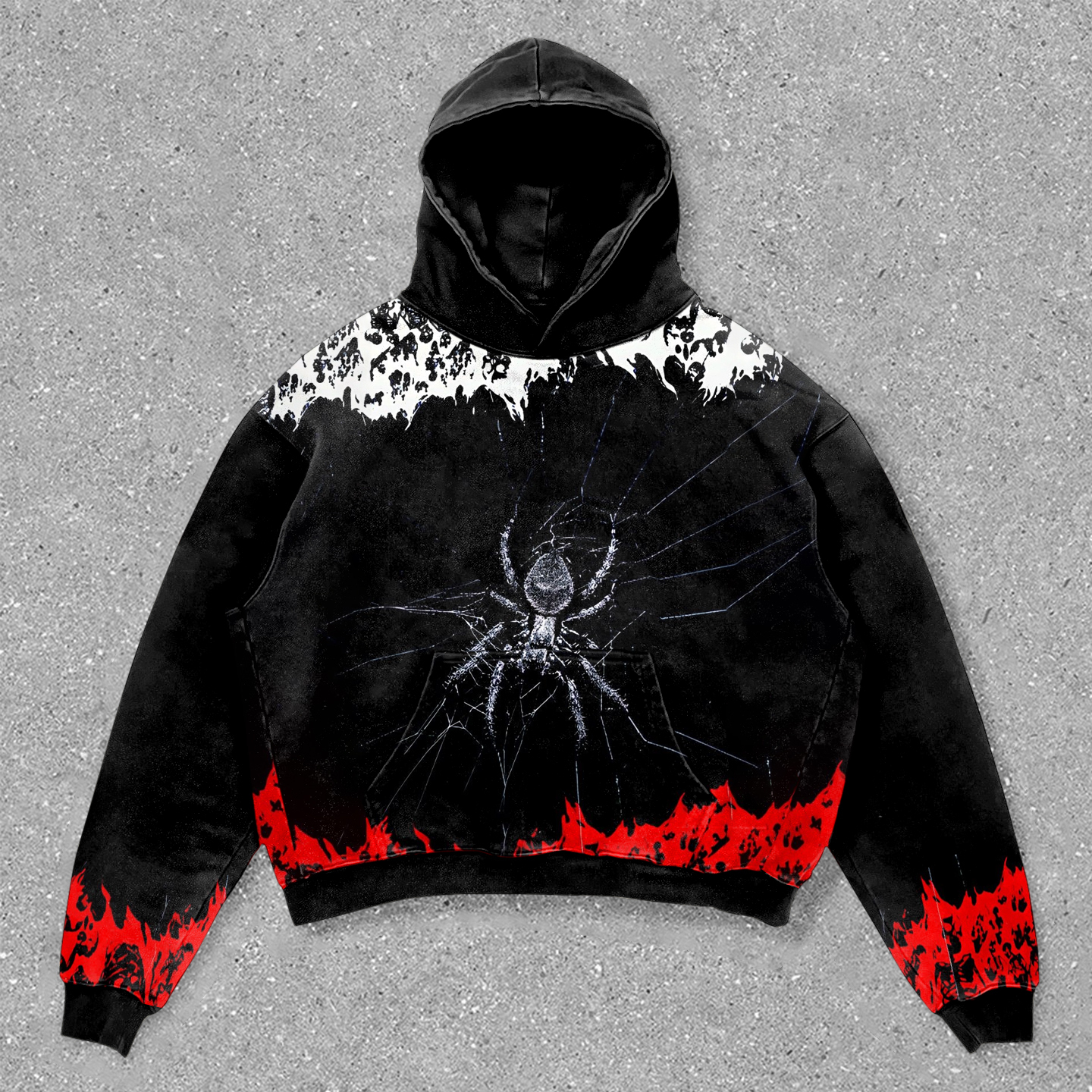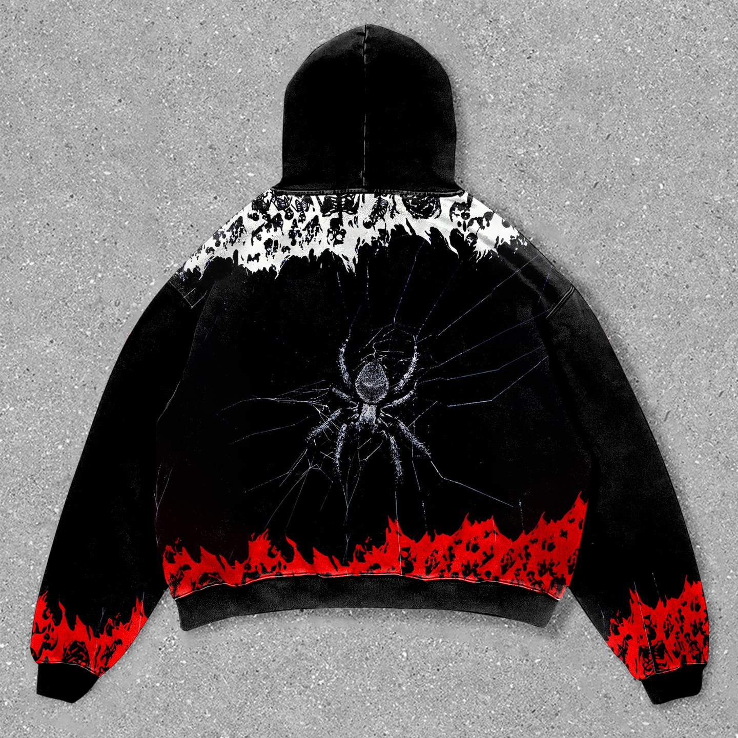 Skull and spider contrast print hoodie