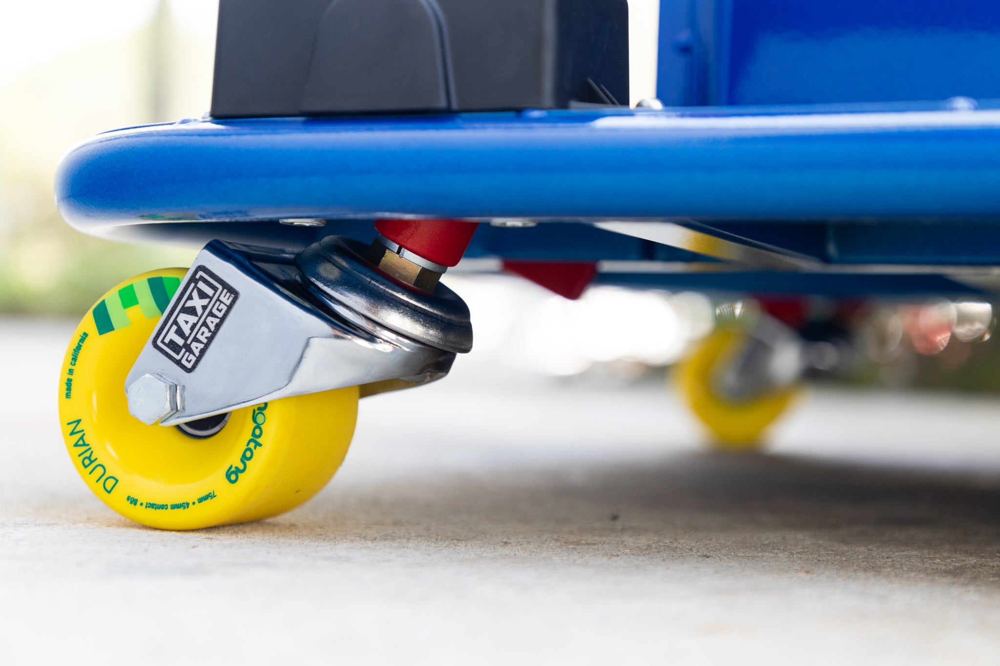 TAXI GARAGE Wide casters including spacers w/longboard wheels.
